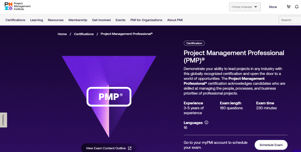 PMP(Project Management Professional) 자격증은 프로젝트 관리 분야에서 국제적으로 가장 권위 있는 자격증으로, PMI(Project Management Institute)에서 주관합니다. 이 자격증은 프로젝트 관리의 전문성을 공인하며, 글로벌 기업에서도 높은 신뢰를 받고 있습니다.